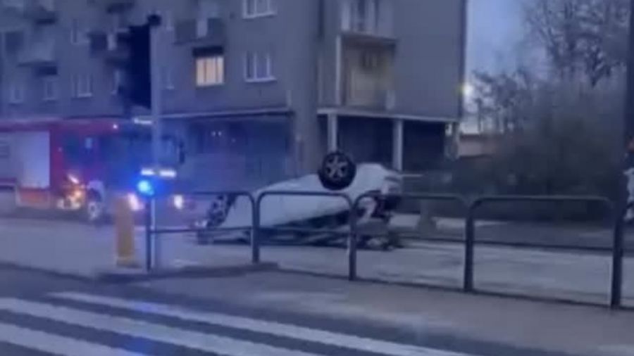 W niedzielny poranek na jednej z najruchliwszych ulic Poznania doszło do poważnego zdarzenia drogowego. Około godziny 6:00, na śliskiej po opadach nawierzchni ul. Głogowskiej, samochód osobowy stracił przyczepność, uderzył w słup, a następnie przewrócił się na dach.
