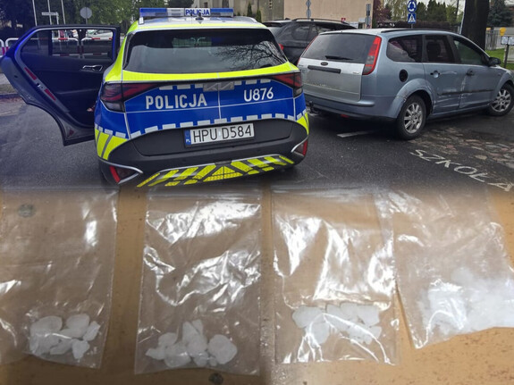 W trakcie próby zatrzymania 32-letni mężczyzna wyrzucił przez otwarte okno pojazdu woreczek strunowy. W środku znajdowała się skrystalizowana substancja, która wzbudziła podejrzenia funkcjonariuszy.