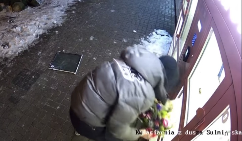 Do zdarzenia doszło w czwartek, 27 listopada, późną porą. Jak relacjonują pracownicy kwiaciarni, do automatu podeszła para. Kobieta wybrała bukiet, po czym mężczyzna przystąpił do brutalnego wyłamywania elementów urządzenia. Na nagraniu widać wyraźnie, jak próbuje sforsować obudowę, a następnie sięga po kwiaty znajdujące się w środku.