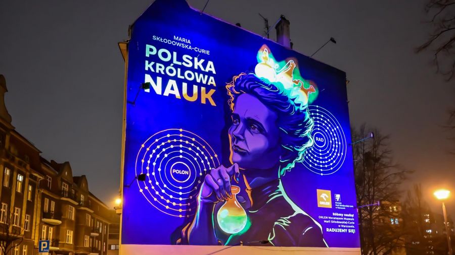 Na jednej z kamienic w Poznaniu pojawił się nowy mural poświęcony Marii Skłodowskiej-Curie. Malowidło wyróżnia się tym, że po zmroku wybrane elementy zaczynają świecić. Instalacja jest częścią ogólnopolskiej akcji, która objęła już kilka dużych miast.