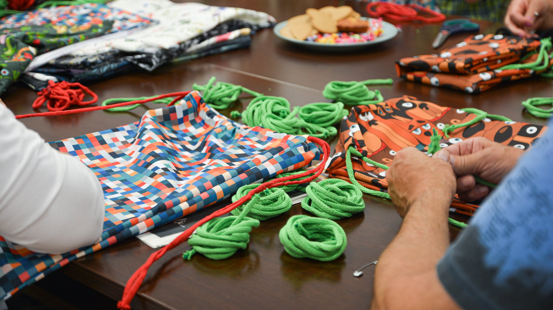 Podczas warsztatów „Torba z duszą” uczestnicy malują na bawełnianych torbach przy użyciu specjalnych farb. Gotowe produkty mają charakter użytkowy i mogą pełnić funkcję prezentów.