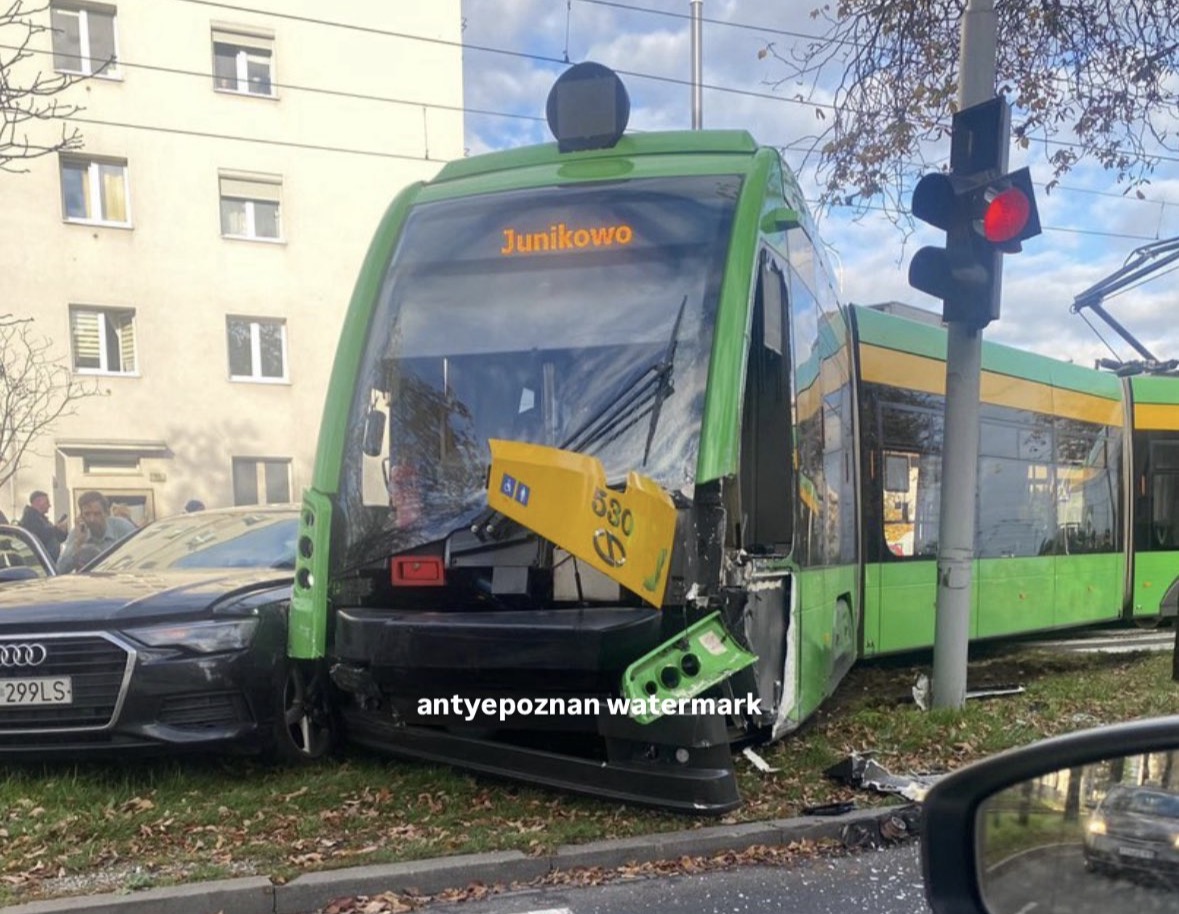Portal Poznań Moment na platformie X poinformował o wypadku samochodu i wykolejeniu tramwaju na ul. Hetmańskiej w Poznaniu.