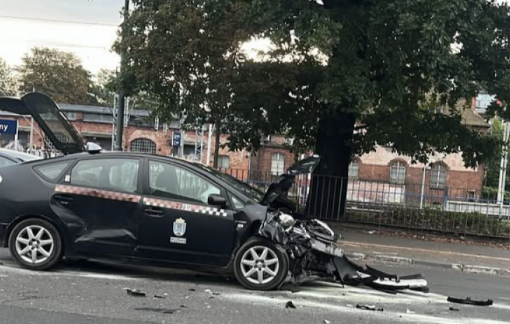Wypadek taksówek przy dworcu w Poznaniu. Uszkodzone pojazdy i utrudnienia w ruchu